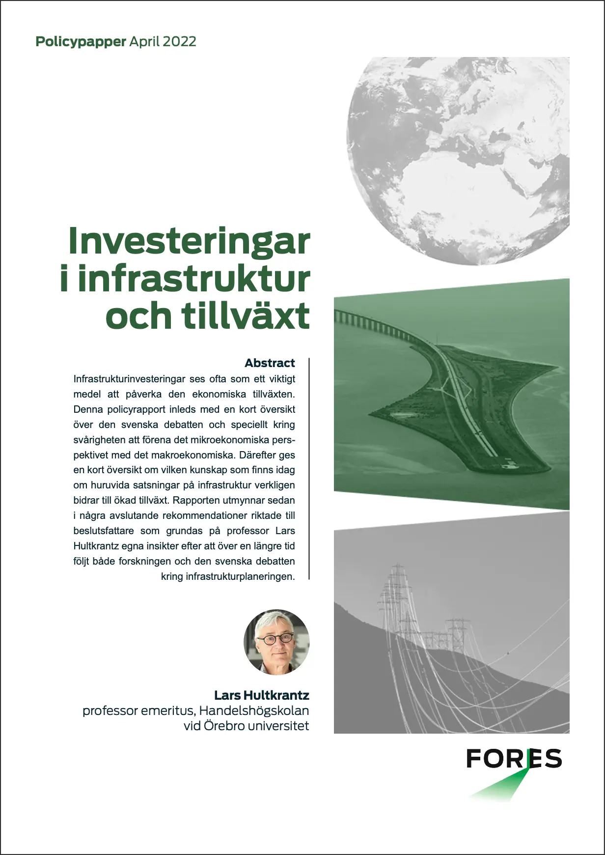 Infrastrukturinvesteringar ses ofta som ett viktigt medel att påverka den ekonomiska tillväxten. Denna policyrapport inleds med en kort översikt över den svenska debatten och speciellt kring svårigheten att förena det mikroekonomiska perspektivet med det makroekonomiska. Därefter ges en kort översikt om vilken kunskap som finns idag om huruvida satsningar på infrastruktur verkligen bidrar till ökad tillväxt.